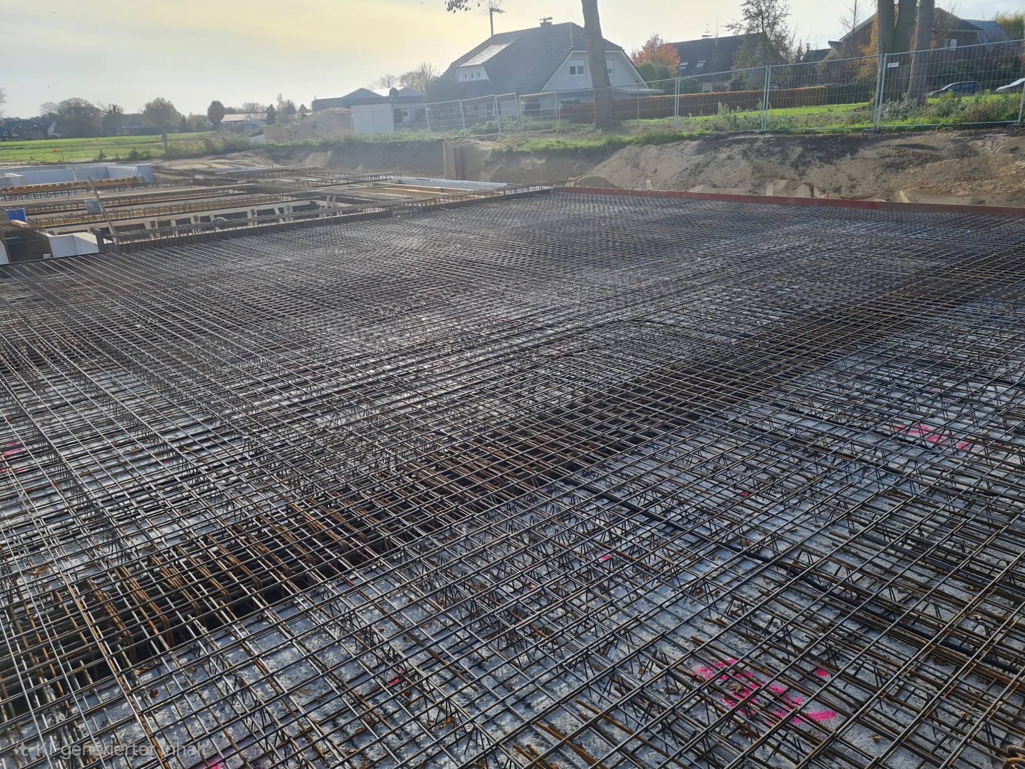 Professionelle Bewehrungsarbeiten für Bodenplatten. Wir sorgen für die stabile Basis Ihres Bauvorhabens durch saubere Eisenflechterei.